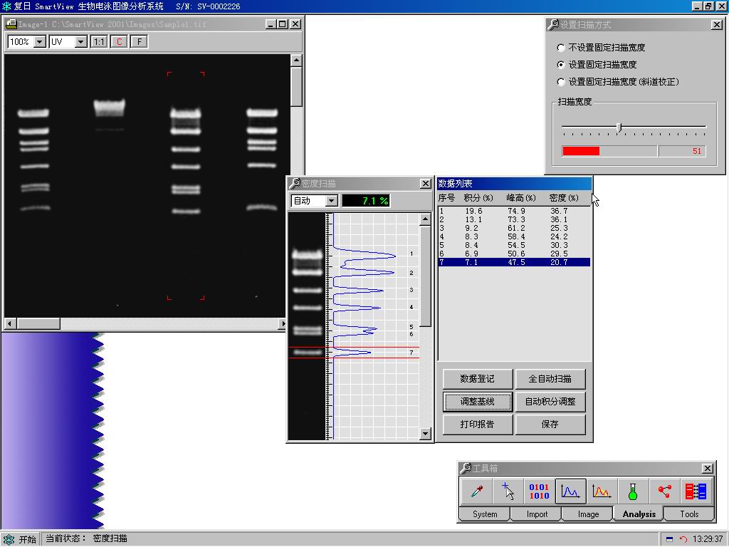 描,绘出扫描曲线,并计算出该泳道中各条带