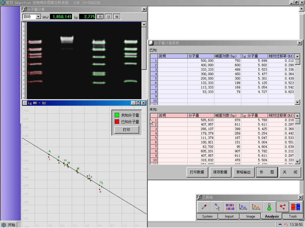 ■ 分子量计算:在输入Mark泳道中各条带的已