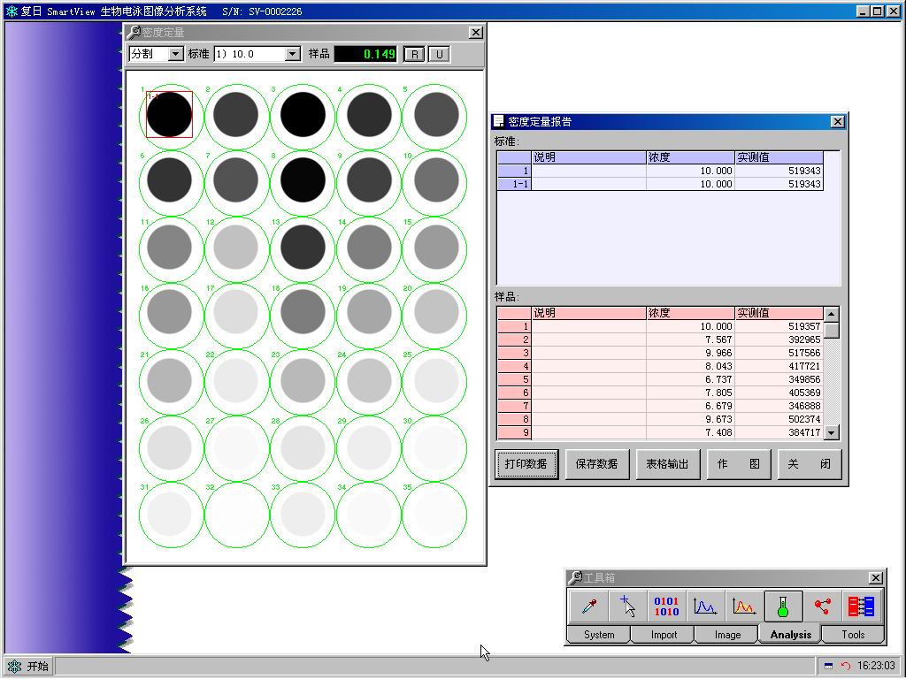 ■ 密度定量:在指定并输入已知条带(圆形或方